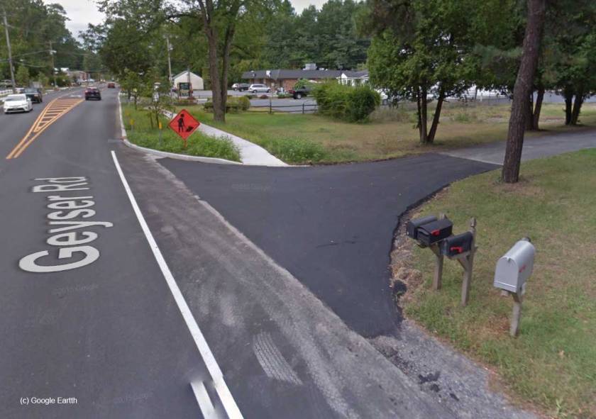 The trail would terminate in back of the mailboxes on the right leaving people to continue on their way via the sidewalk on the other side of the driveway. The town line is actually another 150 feet to the west, beyond the driveway, but that’s academic. While pedestrians would still have a sidewalk on both sides of the road, bike riders would be dumped onto Geyser Road, itself, along with all of its traffic. At that point, it would be up to the Town of Milton to continue the trail or create a bike lane. But let’s step back and consider the Big Picture. The trail is really a spur off the Saratoga Springs Greenbelt Plan. In other words, its initial intent is not to connect trail networks at each end, only at the Spa Park end. In the long run, the Town of Milton may build connections on the western end, but it’s immediate purpose is for easier access from the Geyser Road developments to downtown Saratoga Springs.