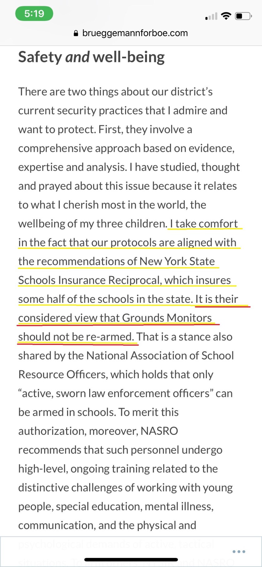 One issue in particular, that of school safety, has prompted several people to run for the school board and/or make certain decisions about our safety plan. Let me be clear that I was going to run anyway. I am concerned with our local community and how our school district makes decisions. While I support rearming the monitors, it is not why I ran, and the rearming issue is not a political, gun control issue for me. I ran because I care about our school district and understand the magnitude of work that goes into its operation. Our school district deserves to have people on the board that encourage a healthy working environment, are there to work collaboratively, and understand that the leadership is shared.