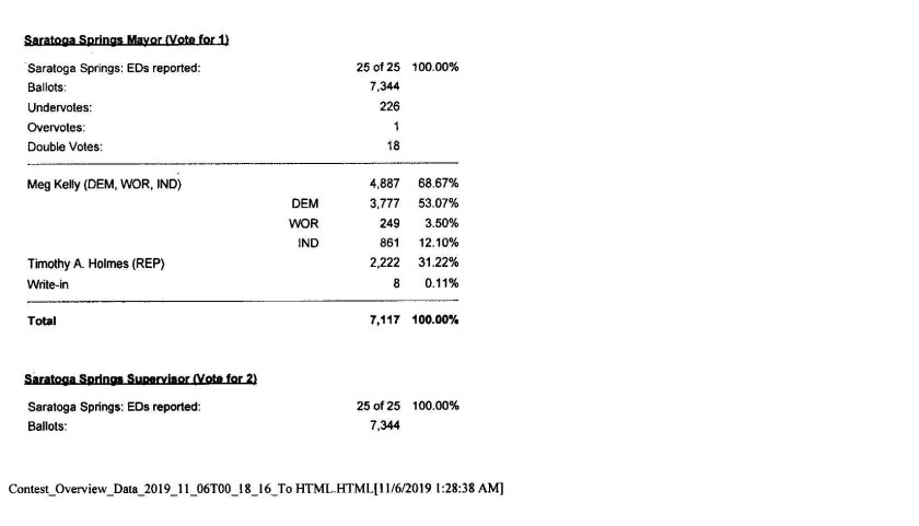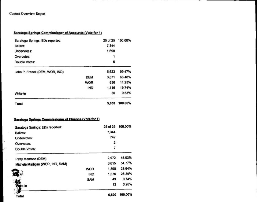 Further Breakdown of Saratoga Springs Election Results