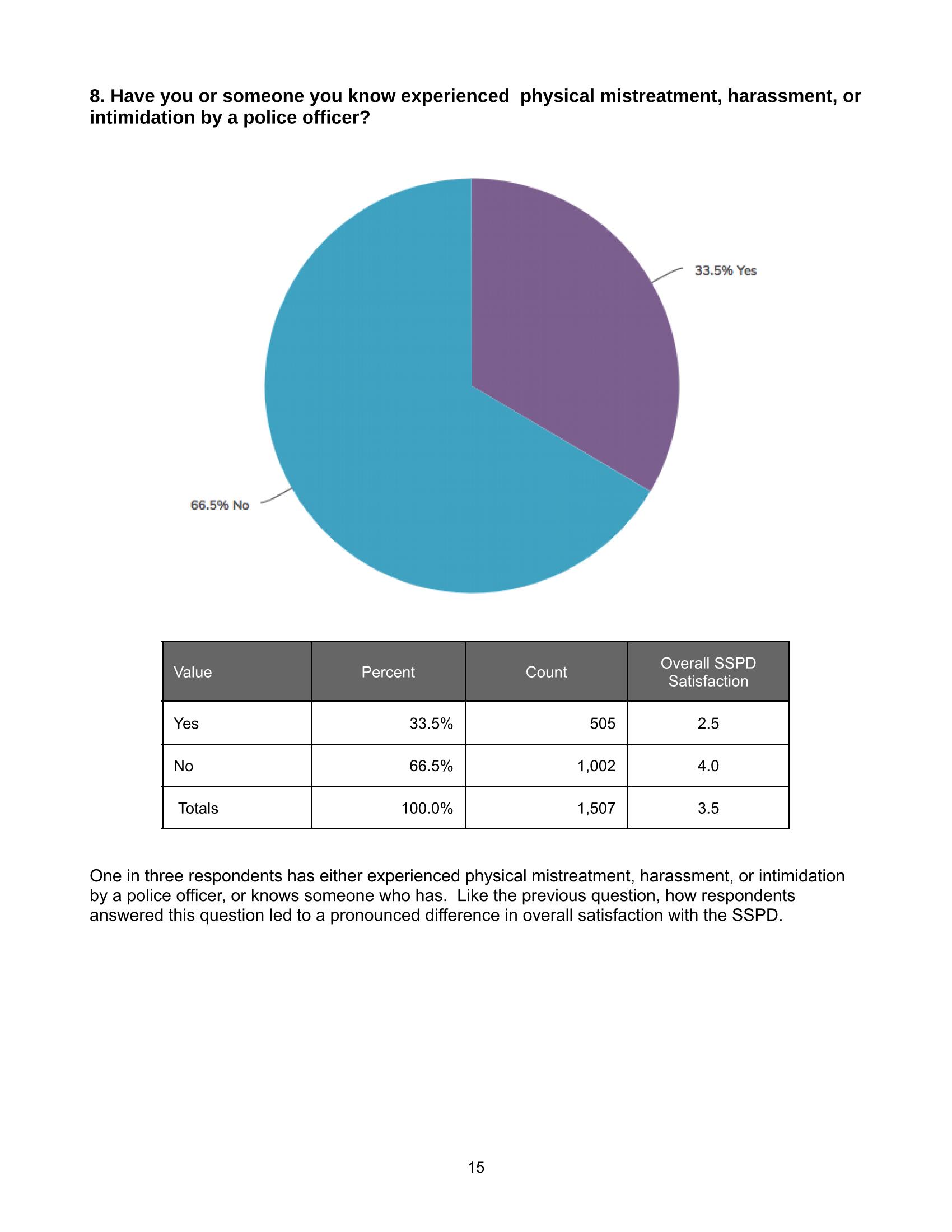 “Have you or someone you know experienced physical mistreatment, harassment or intimidation by a police officer?”