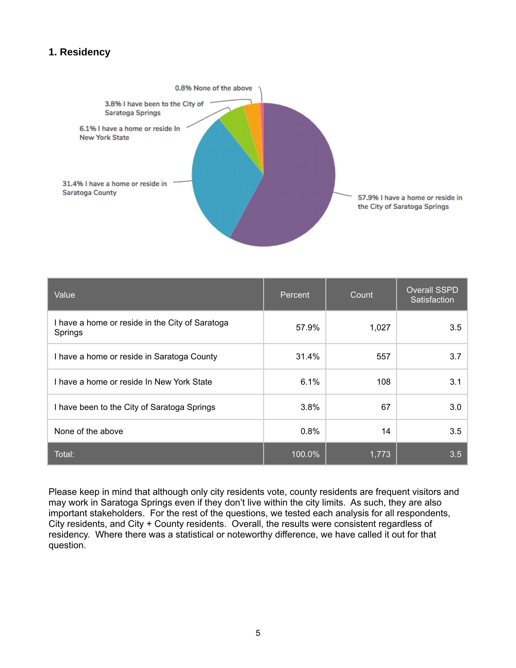 The results that follow are statistically significant and broadly representative of the overall City of Saratoga Springs Community.