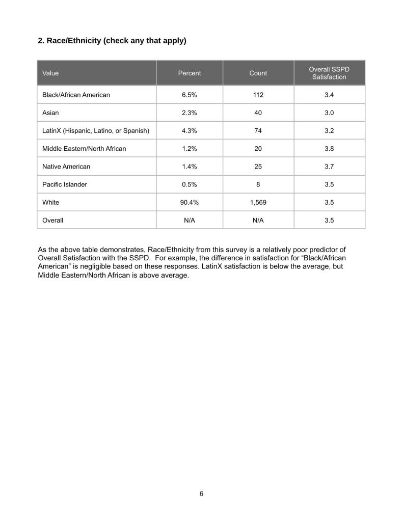 While the previous “up and to the right chart” showing overall satisfaction is visually appealing, it is equally true that nearly 1 in 4 people in our community are dissatisfied with the SSPD