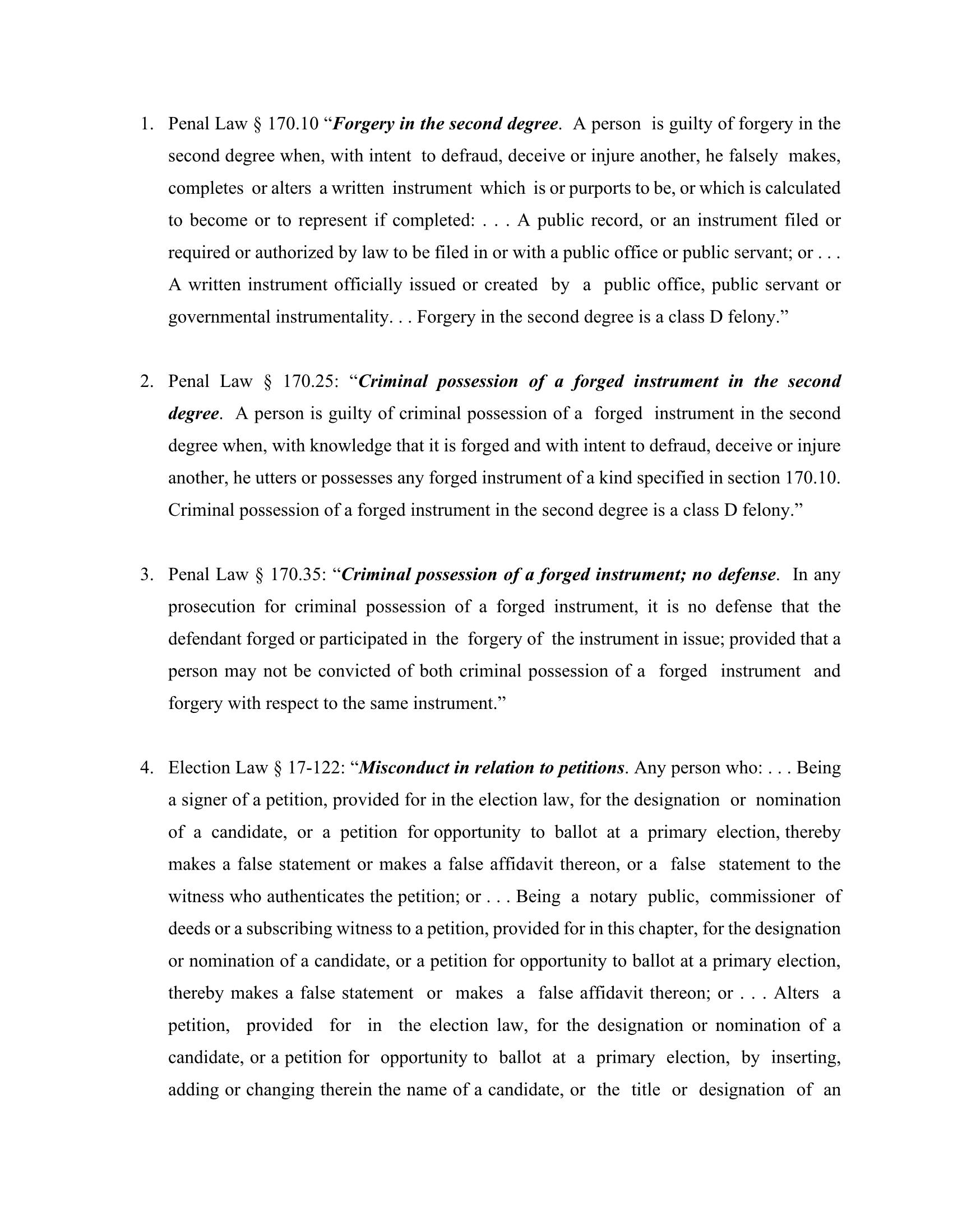New York State election law provides a powerful vehicle for complainants like Mr. Moran and others challenging the legitimacy of petition signatures.