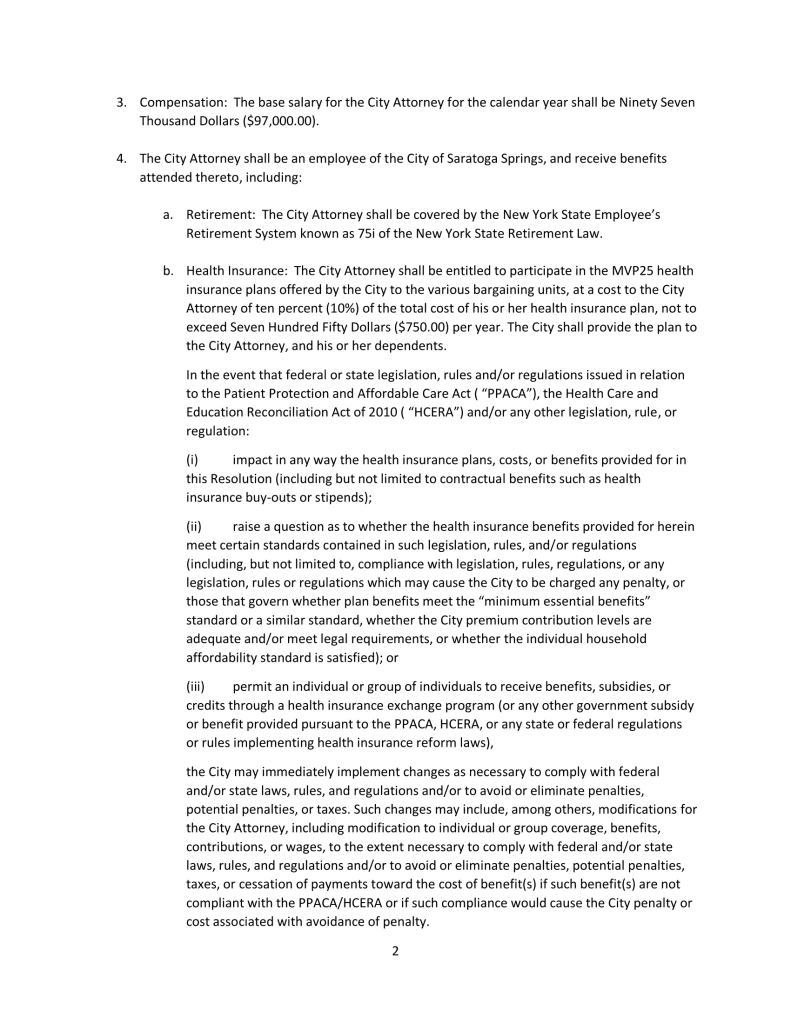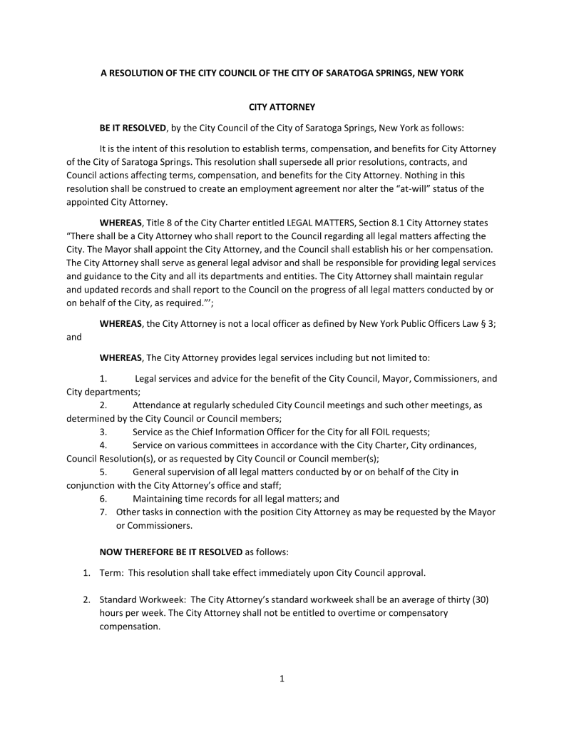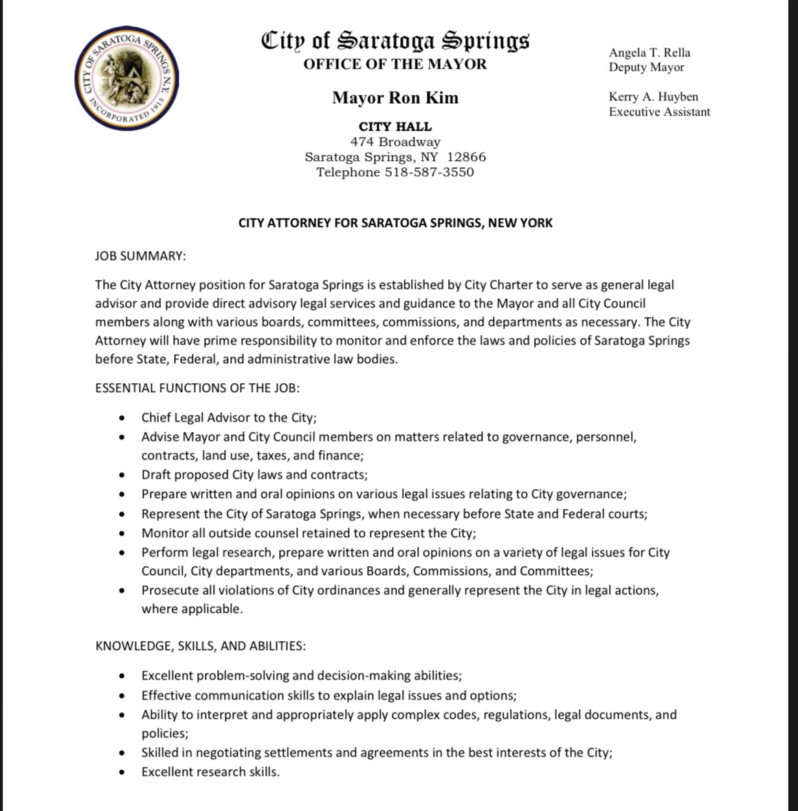 This is a copy of the job description for a Saratoga Springs City Attorney placed on the Saratoga County Bar Association Website