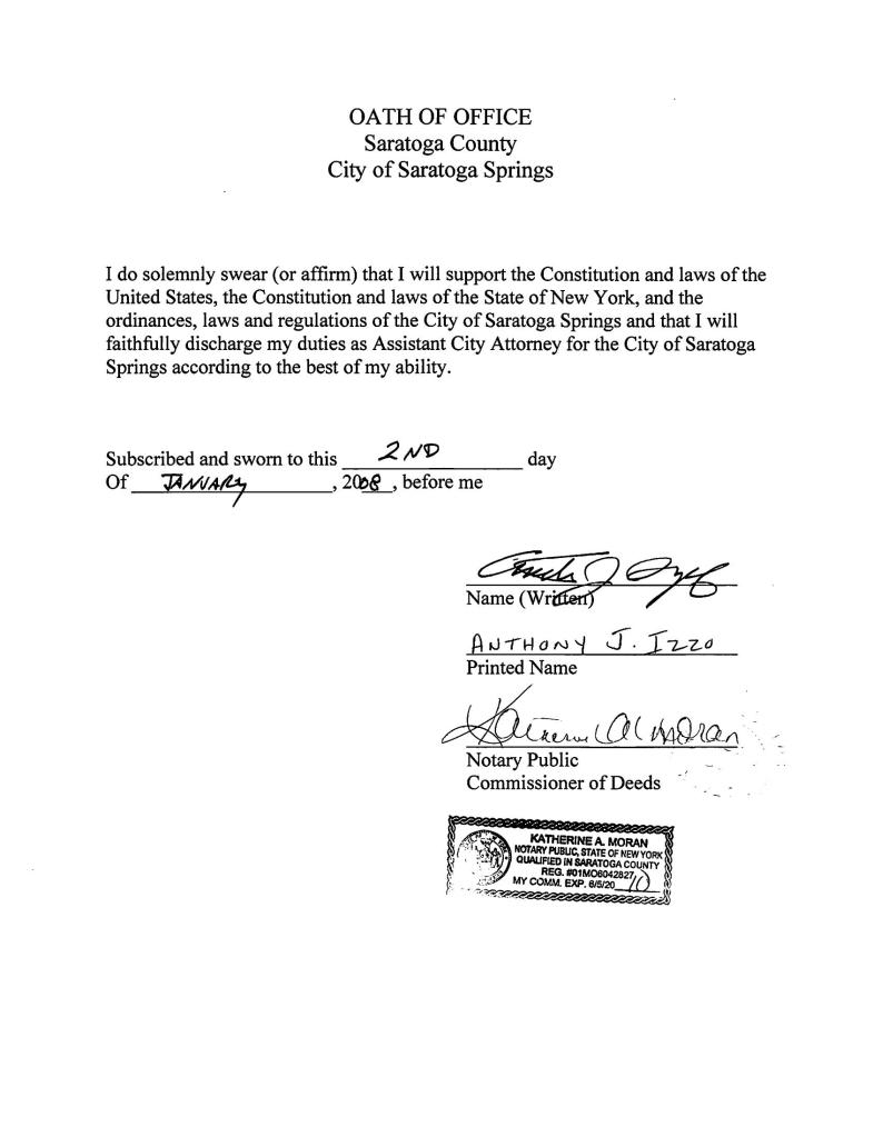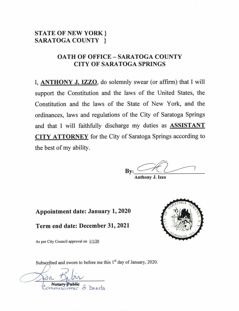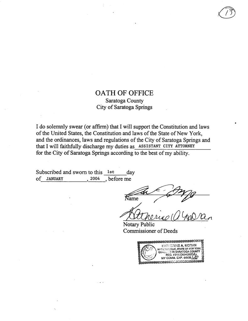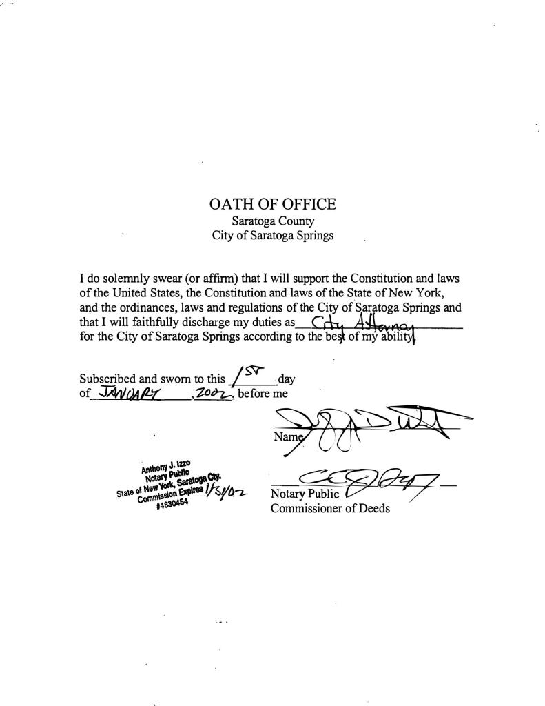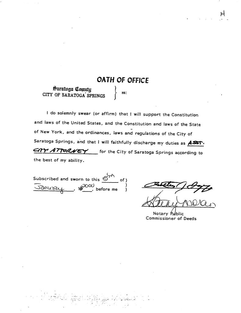 Unfortunately for Mayor Kim, the facts do not bear him out. At the bottom of this post, the reader will find the oaths of office taken by all the City Attorneys in Saratoga Springs for the last twenty years.