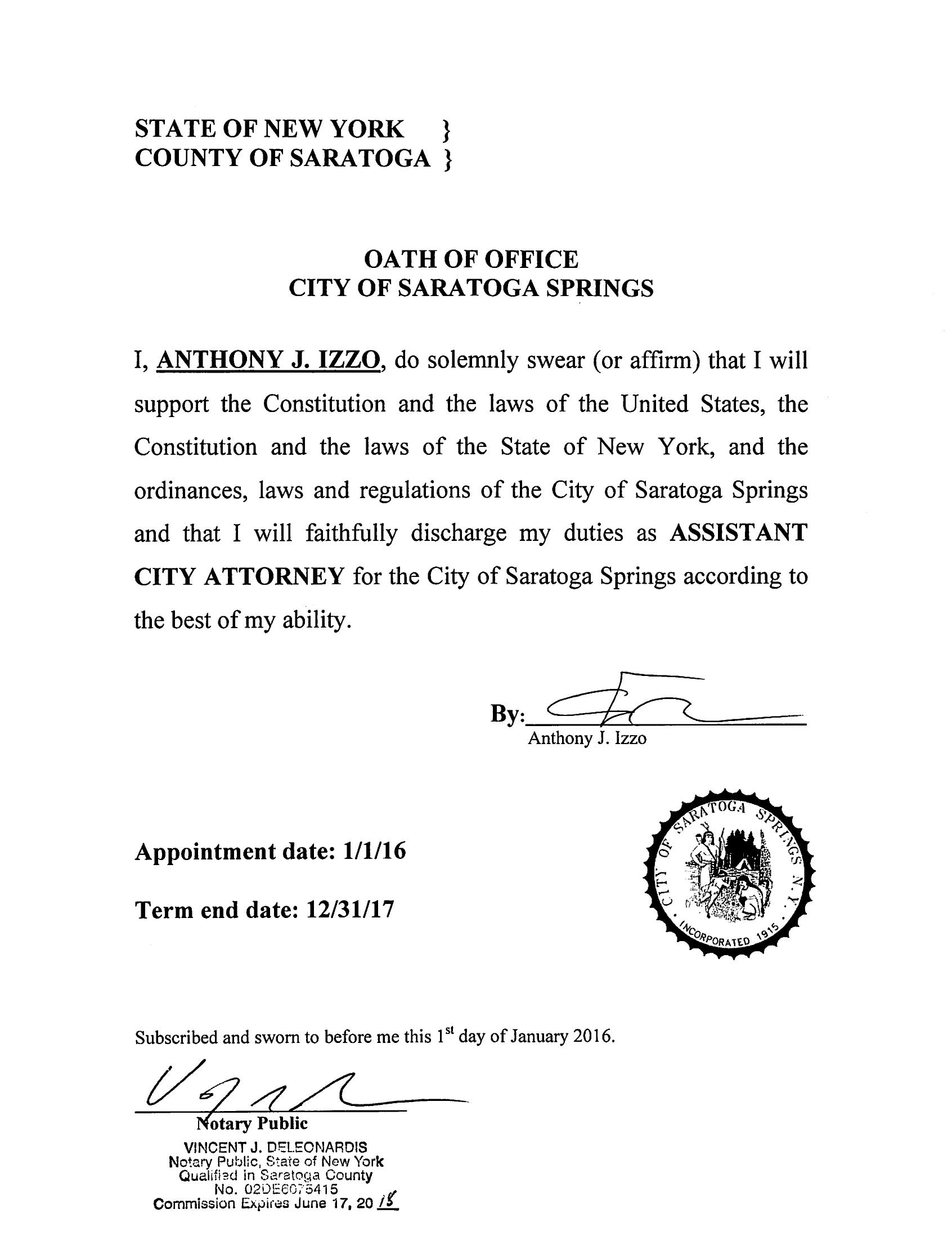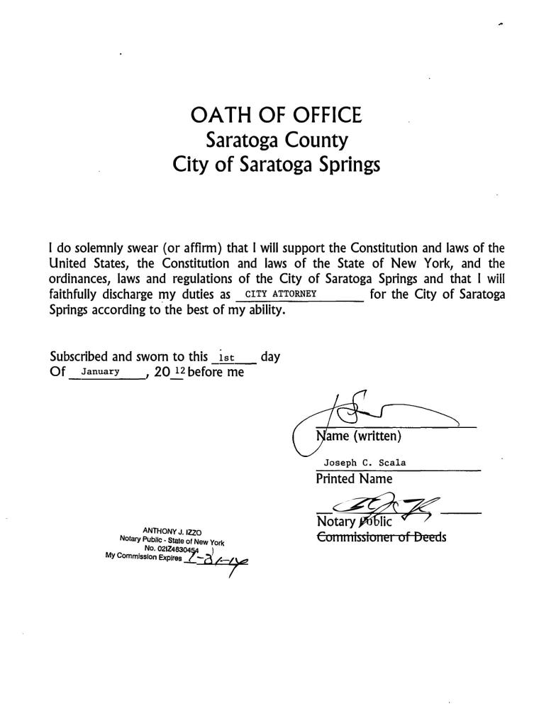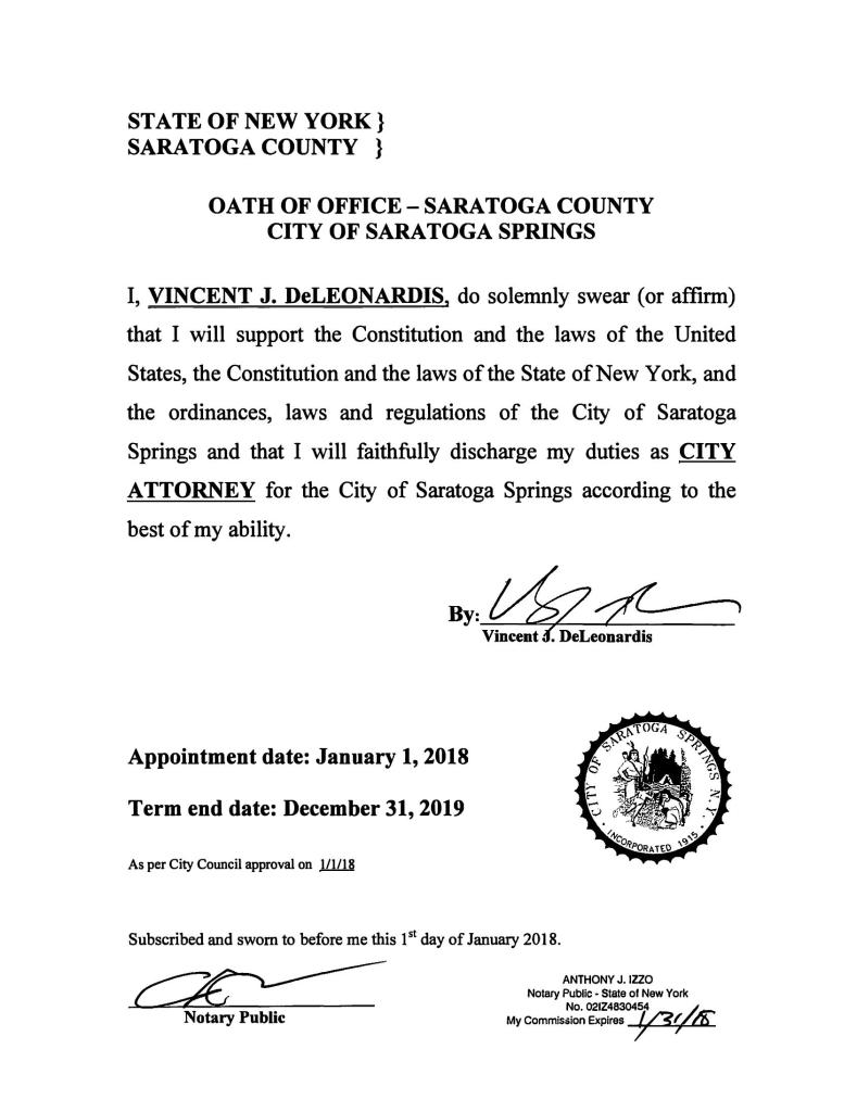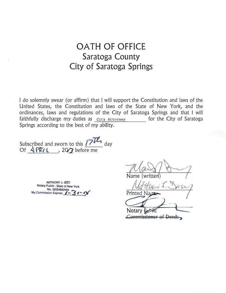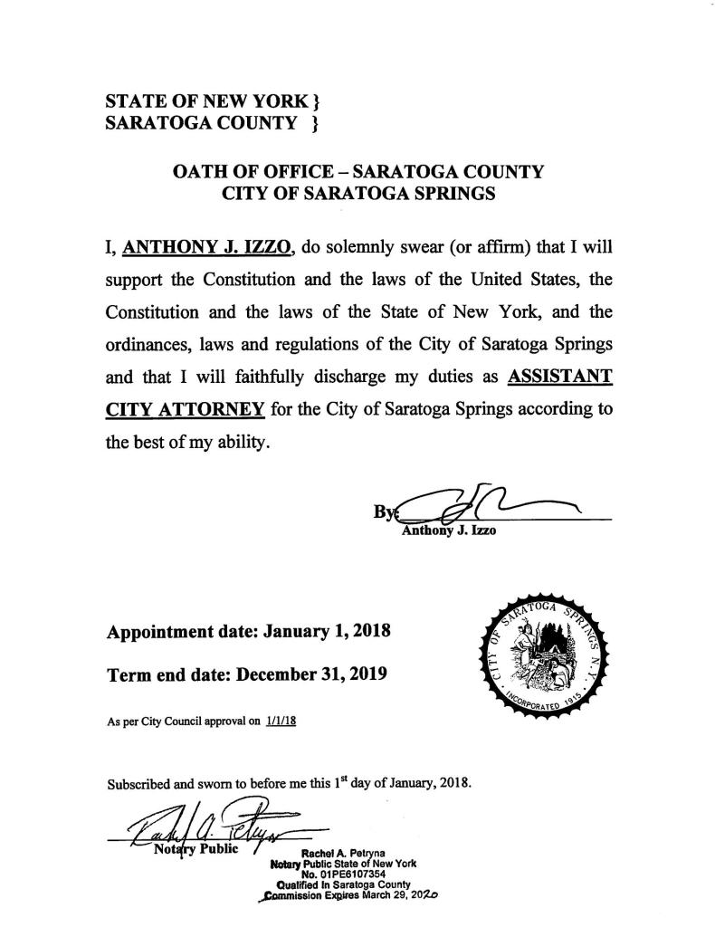 Unfortunately for Mayor Kim, the facts do not bear him out. At the bottom of this post, the reader will find the oaths of office taken by all the City Attorneys in Saratoga Springs for the last twenty years.