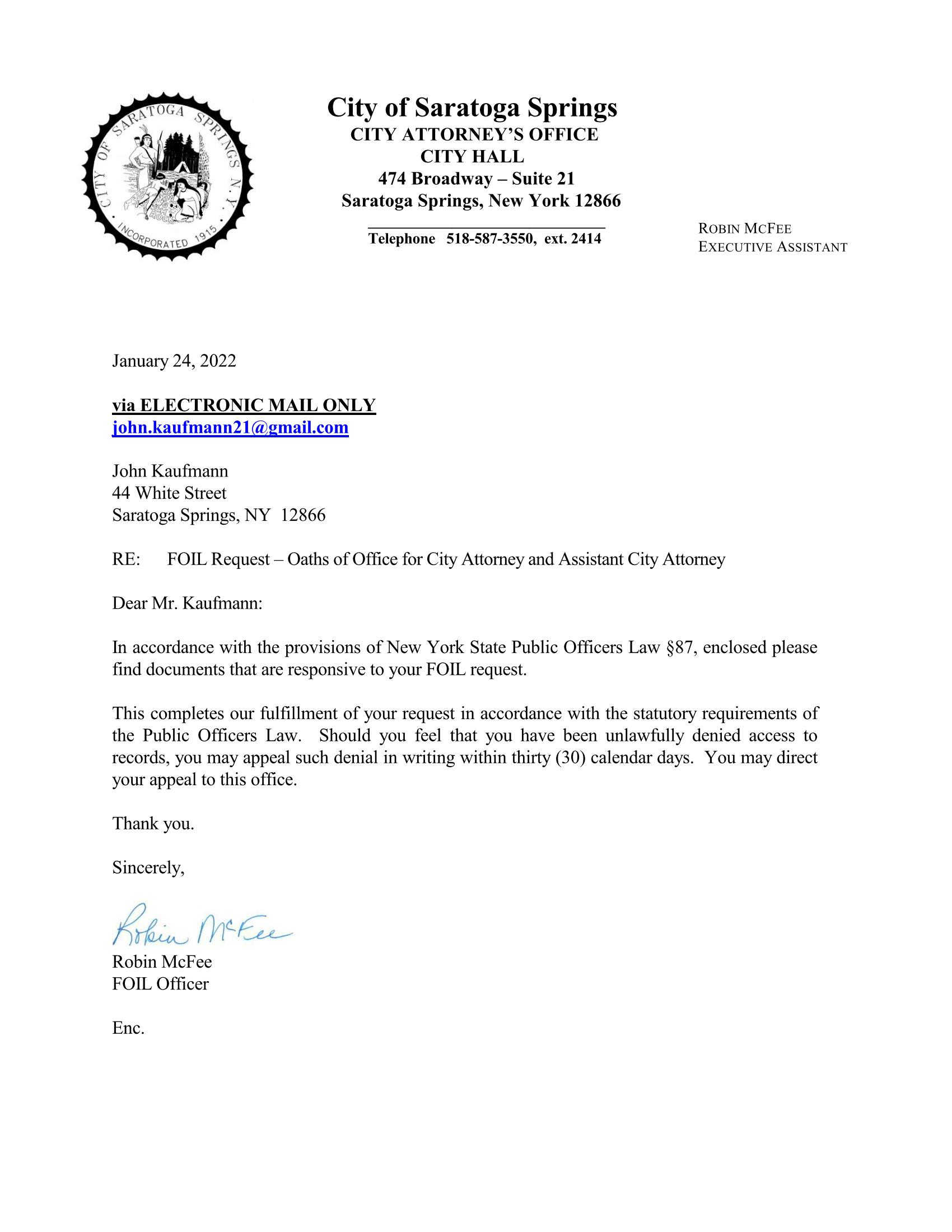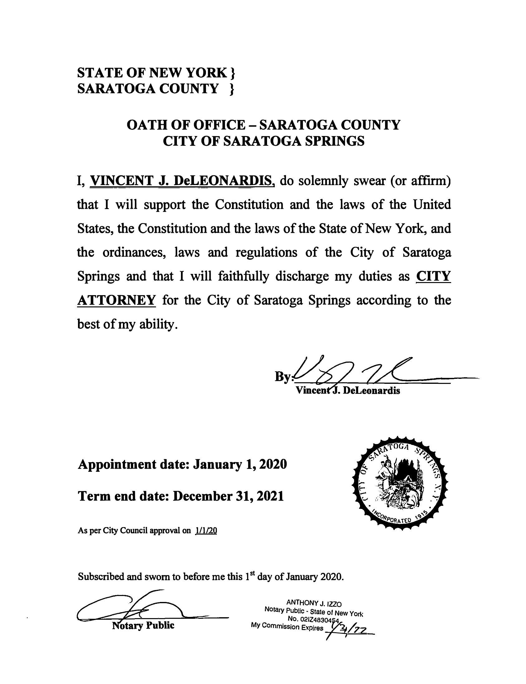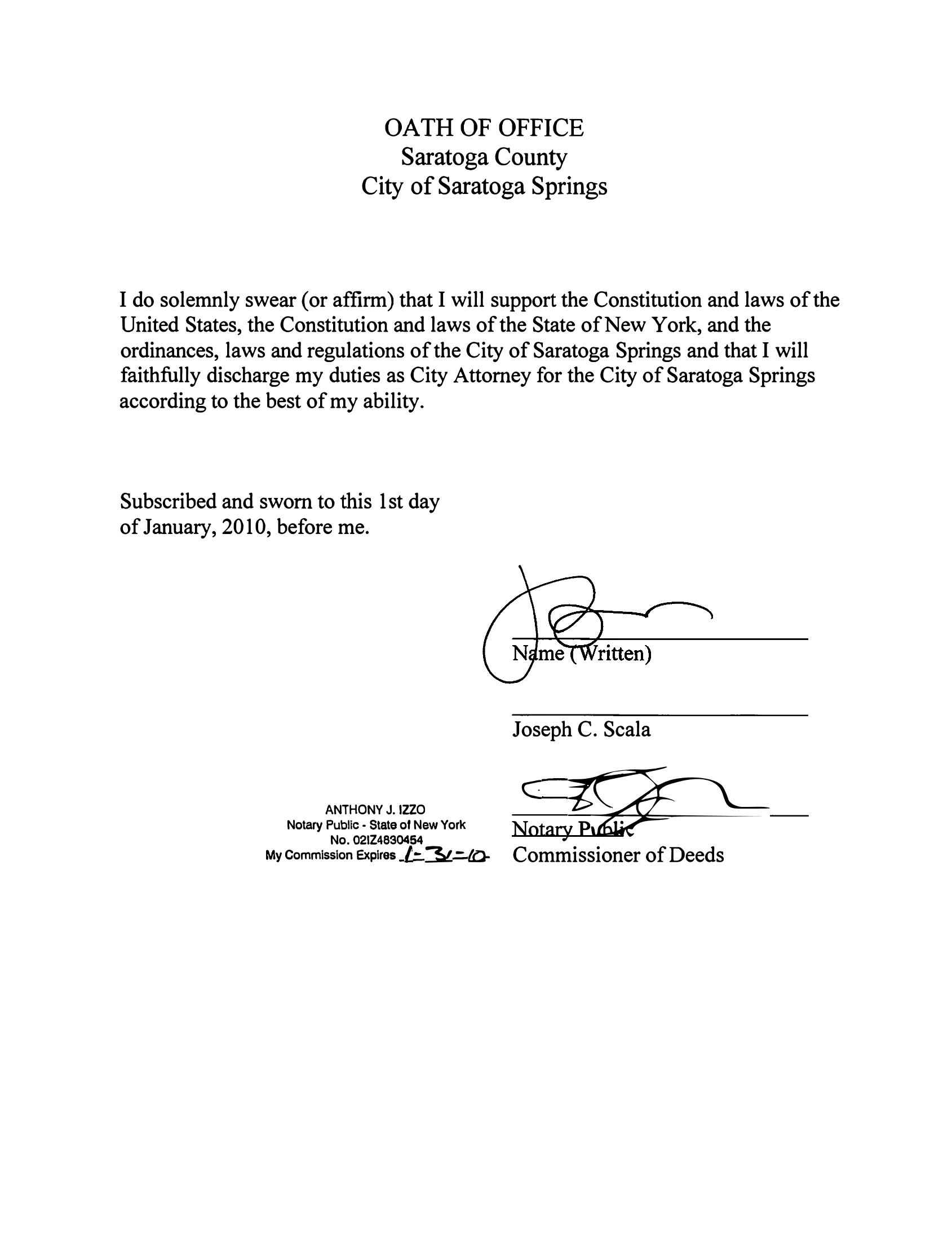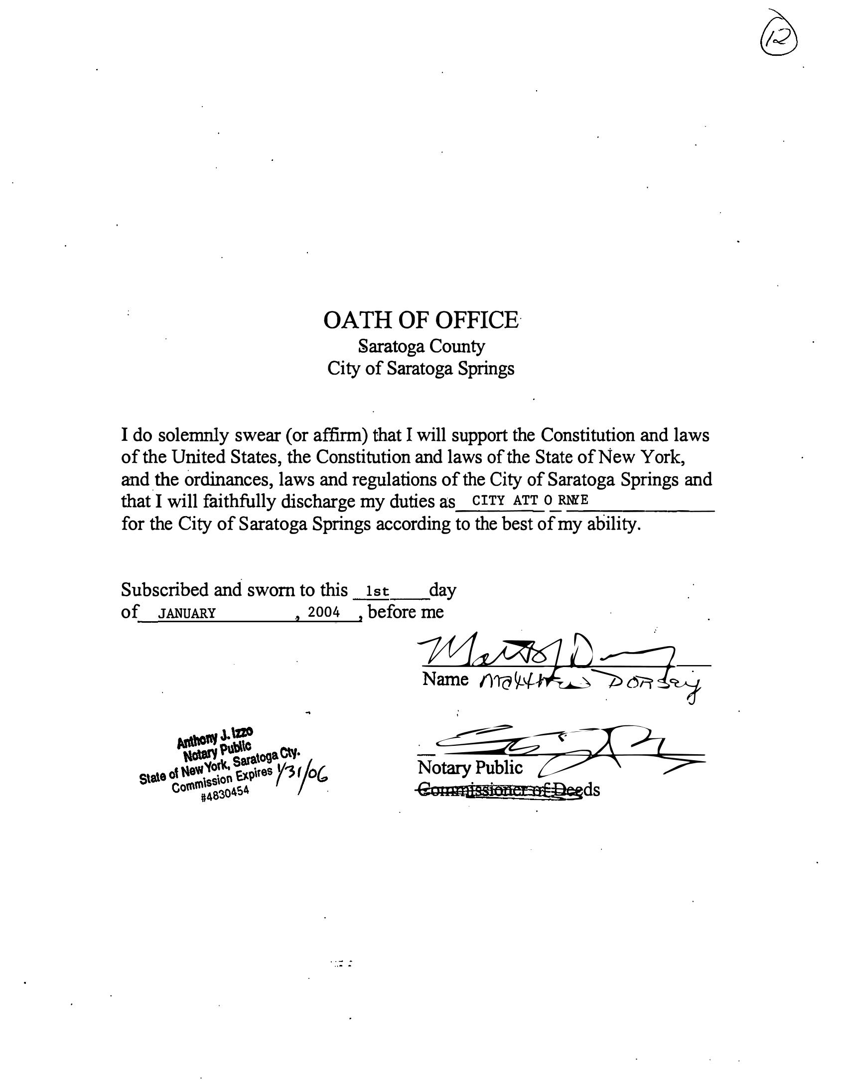 Unfortunately for Mayor Kim, the facts do not bear him out. At the bottom of this post, the reader will find the oaths of office taken by all the City Attorneys in Saratoga Springs for the last twenty years.