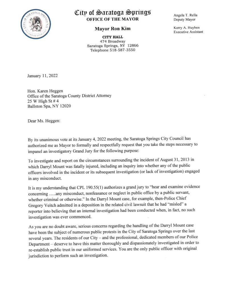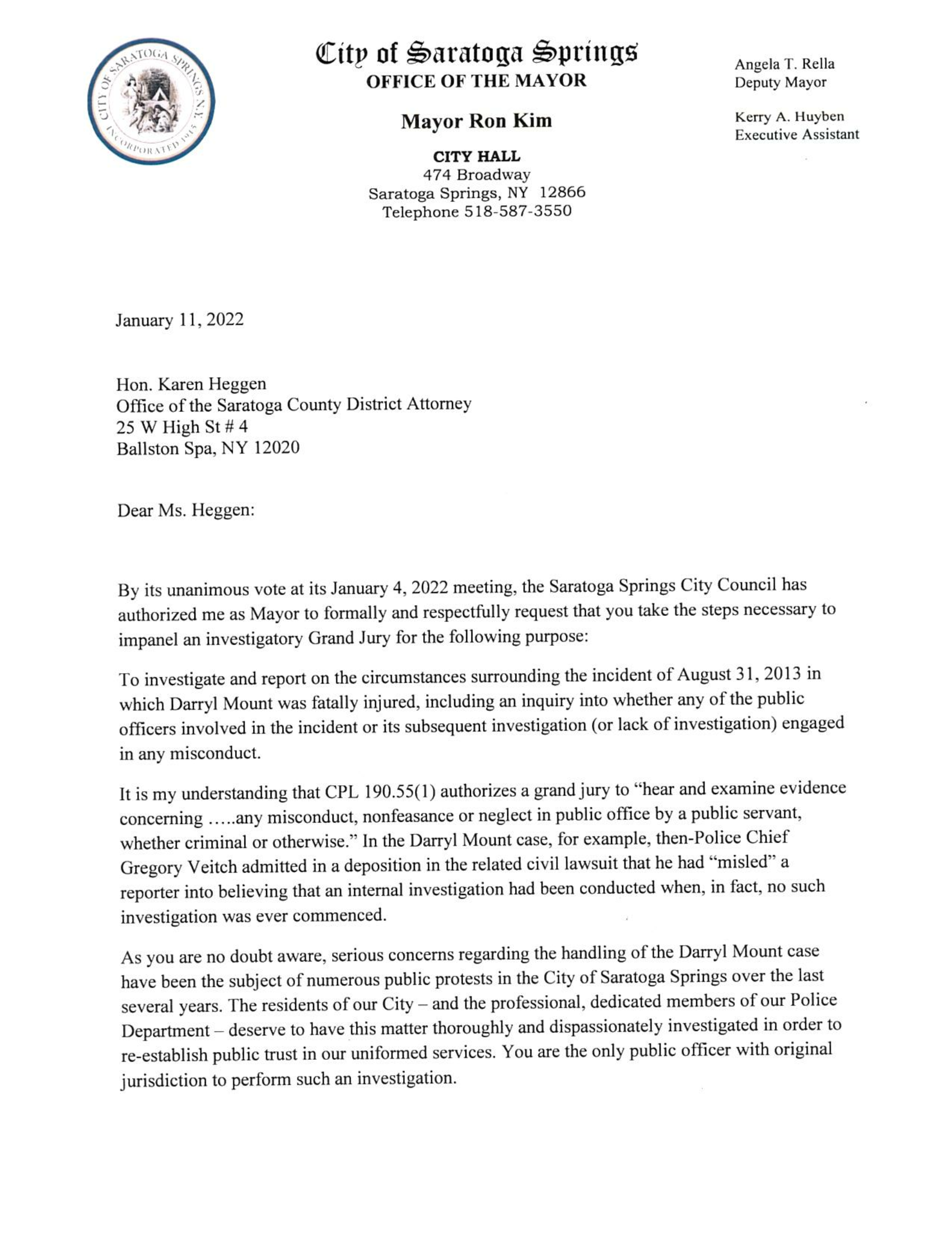 On January 15, 2022, I wrote to Mayor Kim and copied the other members of the Council: