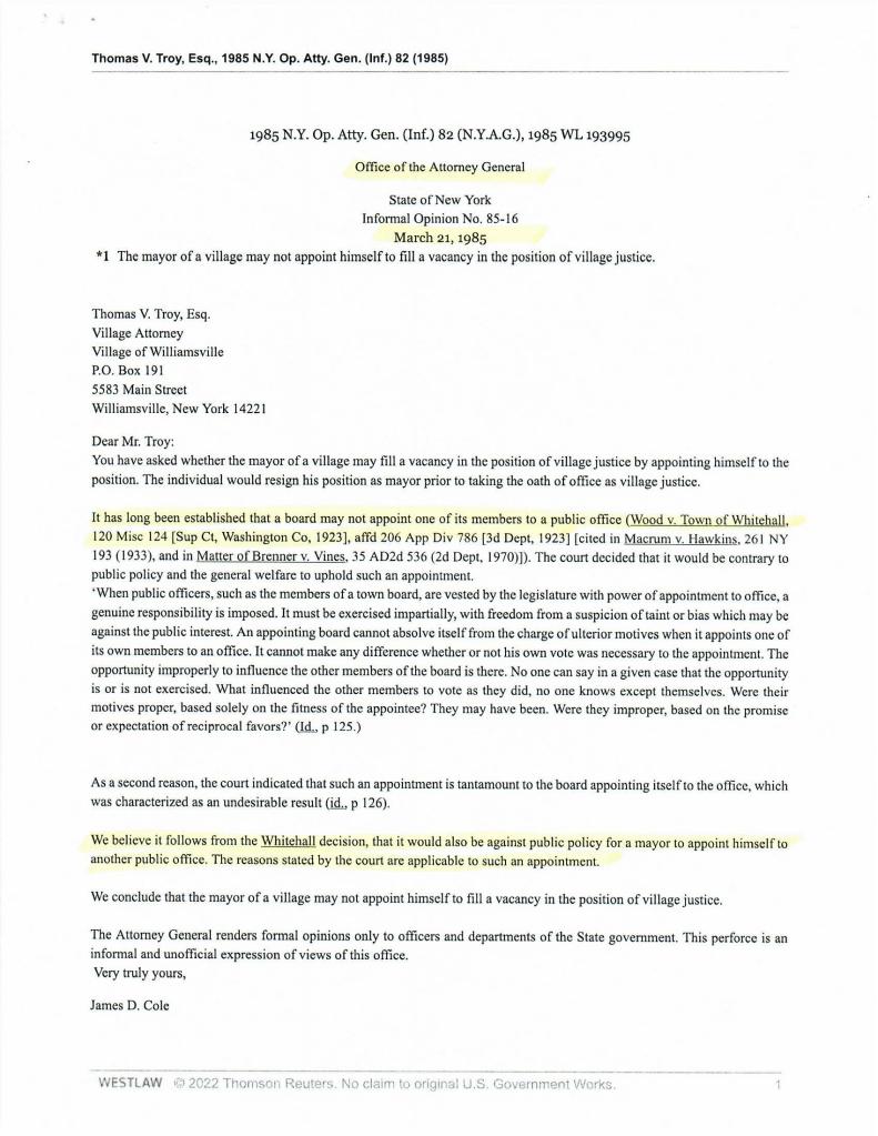 In spite of this, Mayor Kim posted a help-wanted ad on the Saratoga County Bar Association’s webpage that lists a salary, benefits, and hours for the position.