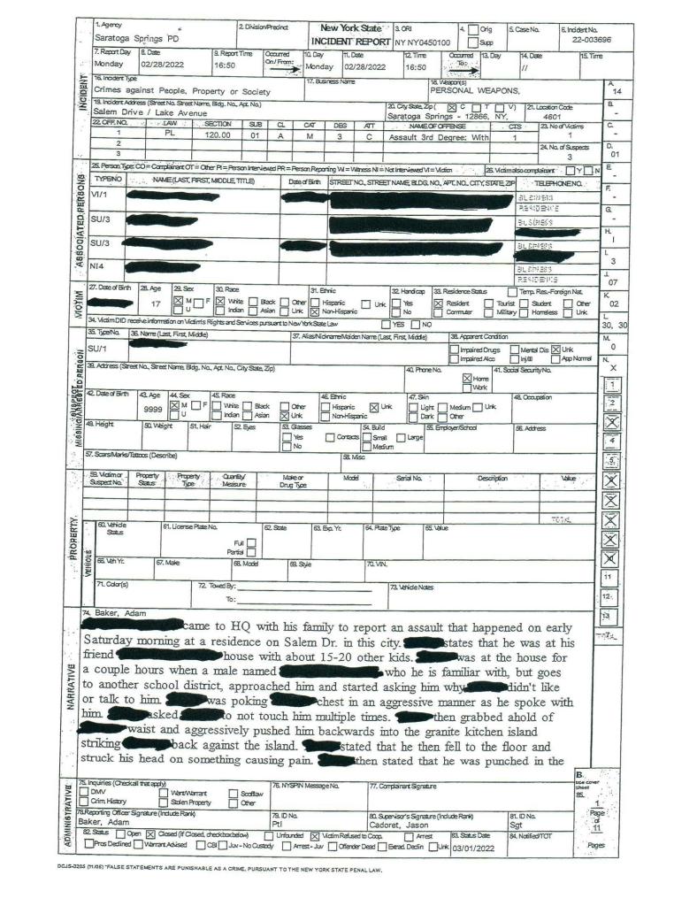 At the April 5 Saratoga Springs City Council meeting, Public Safety Commissioner James Montagnino waved a piece of paper claiming the investigation that involved a fight at a teen party the weekend of February 27th had been closed on March 1, 2022. According to him, this proved that Heggen and Crooks were wrong to refer to the investigation as “ongoing” and therefore he had not “inserted himself into an active police investigation ” as Heggen had charged.