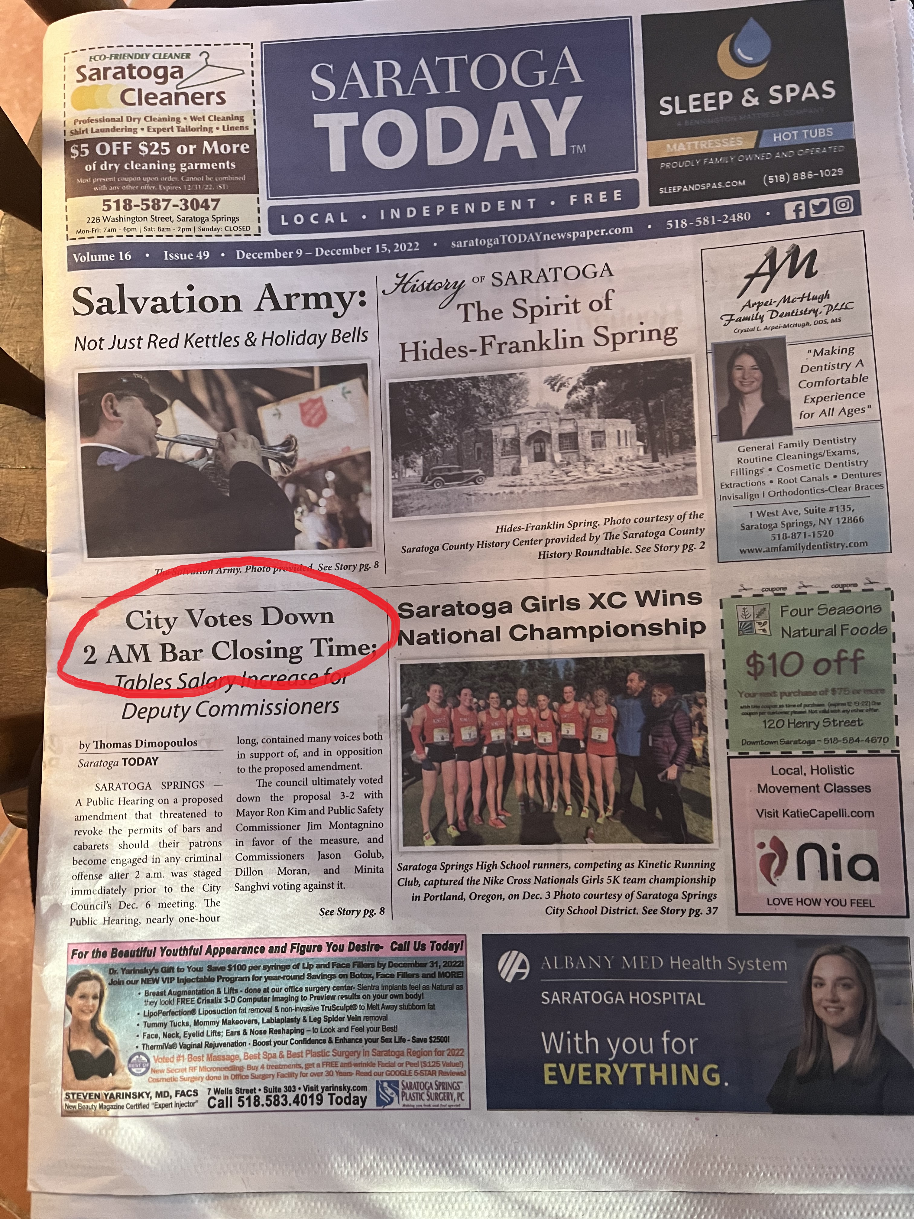 Saratoga Springs Public Safety Commissioner James Montagnino and Mayor Ron Kim’s thirst for media coverage has prompted them to use the most intemperate language in their continuing conflict with Saratoga County District Attorney Karen Heggen. This last week (December 18-24), they have been especially shrill.