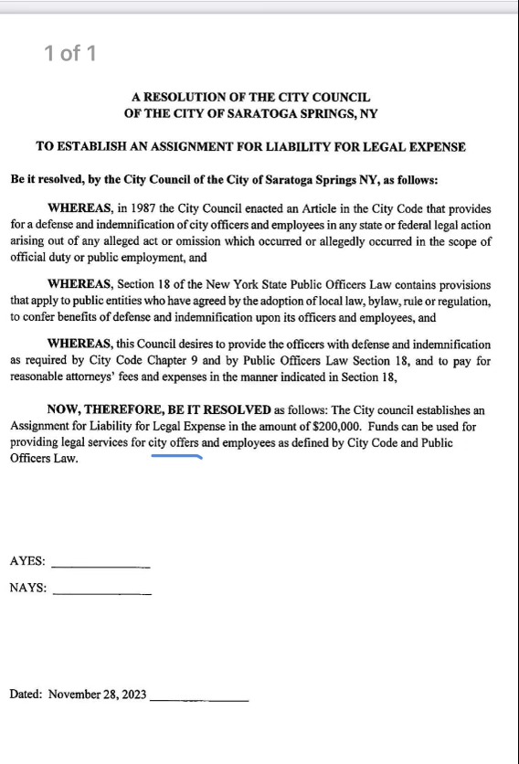 On November 28, 2023, the Saratoga Springs City Council held a special meeting to deal with the 2024 city budget, which, according to the city charter, must be passed on or before November 30. The budget proposal to move money for Risk and Safety from the Mayor’s office to Accounts and the lack of funding for a second City Attorney continued to be the focus of confusing and contentious discussions during the meeting. In addition it appears Finance Commissioner Sanghvi’s budget exceeds New York State’s tax levy limit, and she did not follow proper procedure to do an override.