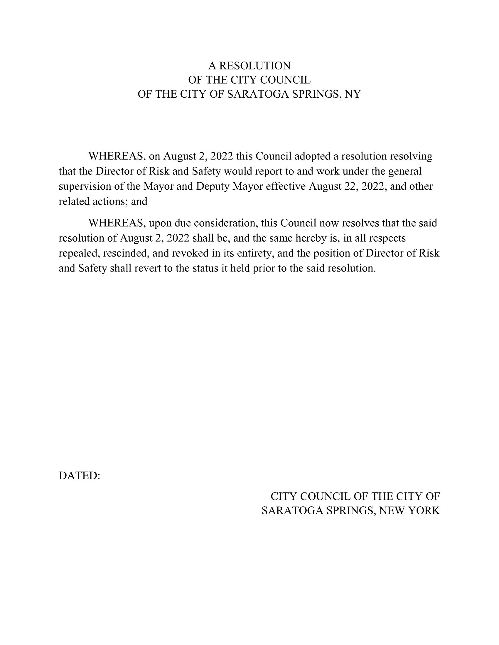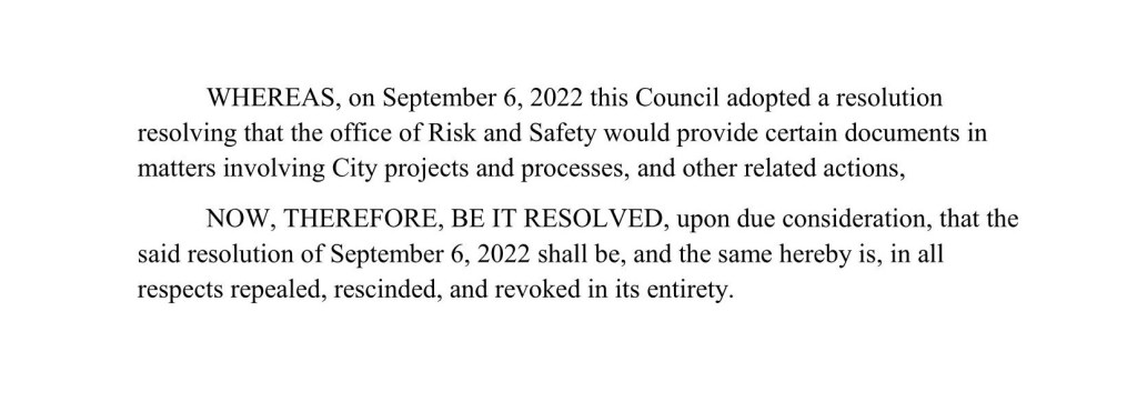 Consider this resolution on Risk and Safety apparently crafted by Moran.( His resolution regarding who should communicate with the State Liquor Authority has the same problem.)
