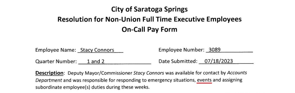 Stacy Connors was the first Deputy to submit a form to the Finance Department to get on-call pay. Significantly, the form she submitted contains the word “event” that was not used in the actual Council resolution.
