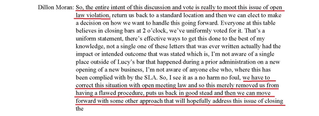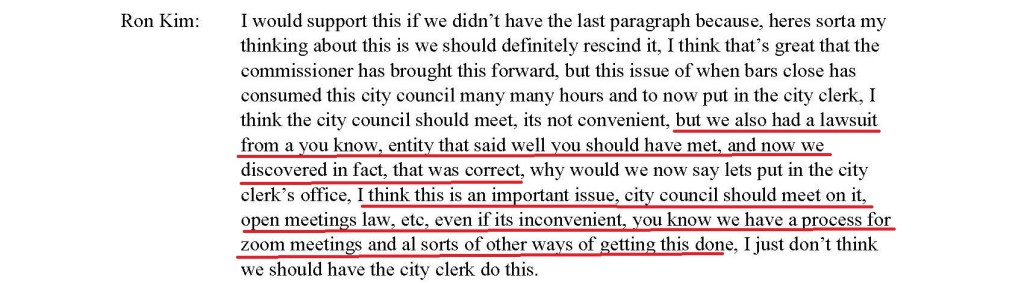At the December 5, 2023, City Council meeting almost a year ago, there was general acknowledgment that the city had violated the Open Meetings Law in approving the early bar openings. Here, Mayor Kim concedes that they violated the OML.