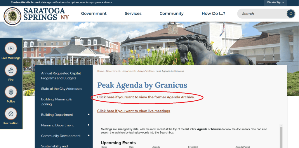 The following is just one of the four pages on the city’s website that are all supposed to take you to the archive. In this case, here is the page where the link is supposed to be.