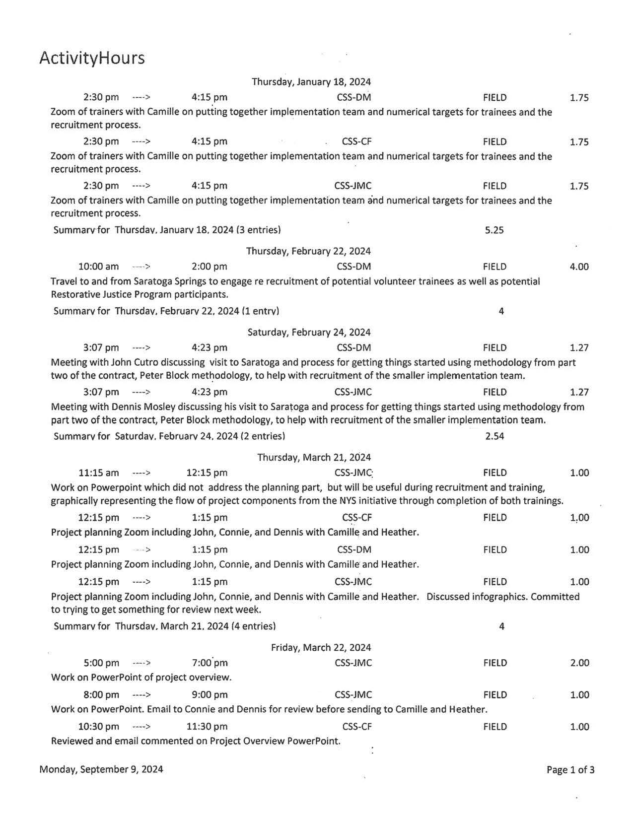 Here is a complete list of the activities they have billed the city for. Their last submission was for a September 4 two hour email, text, and phone discussion.