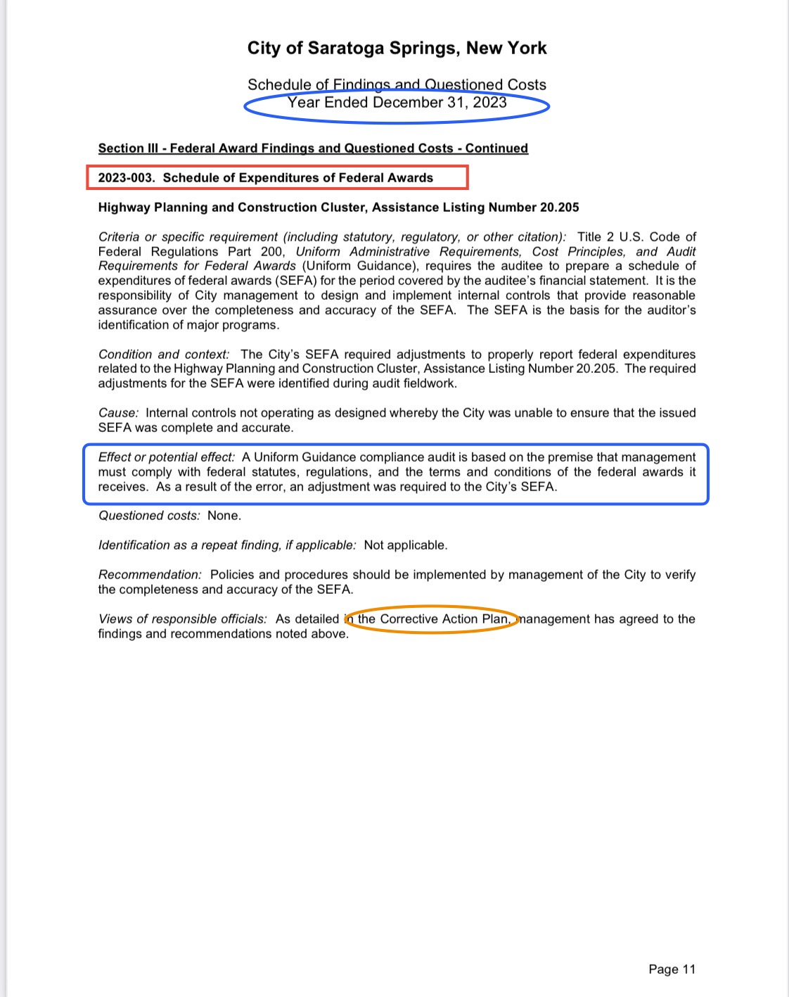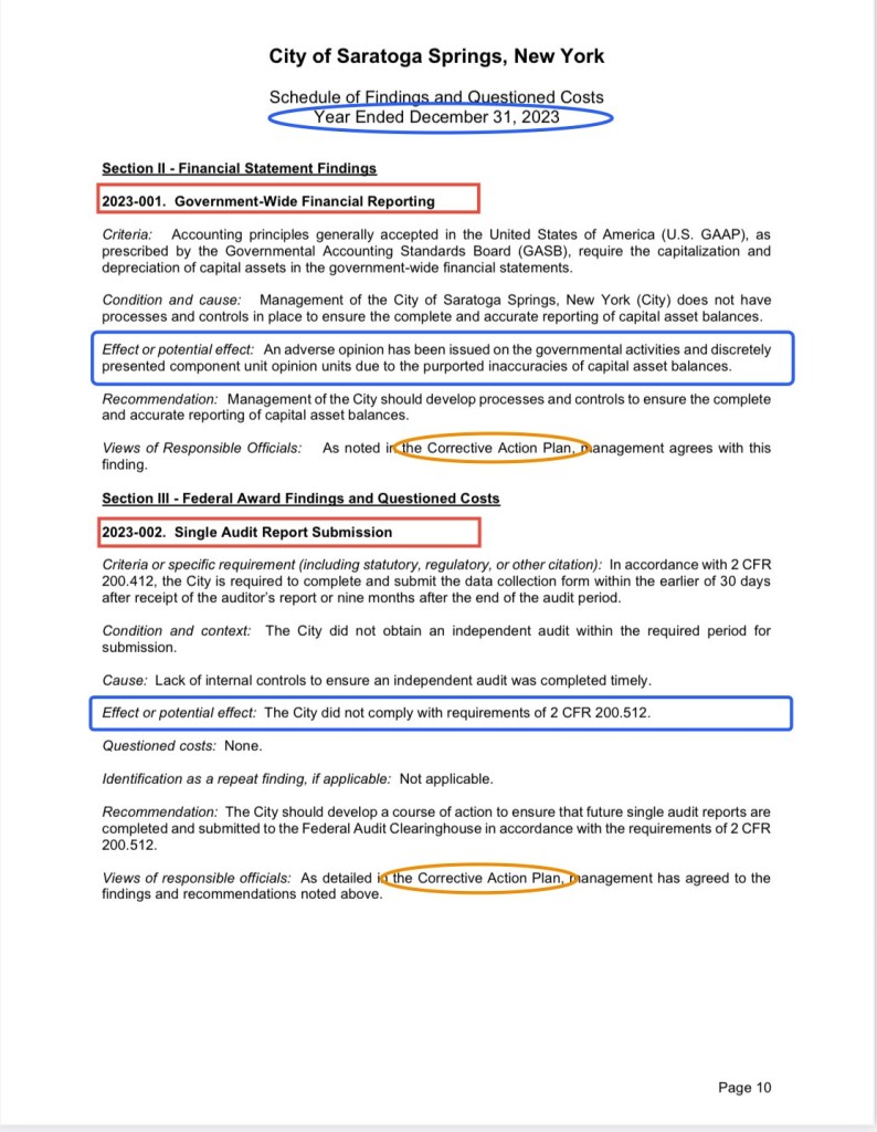 This document requires the city to submit an action plan to address the problems uncovered by the audits. It is alarming that this 2023 audit includes the fact that Sanghvi’s action plan, committed to responding to problems with the 2022 audit, was never carried out and is included again with this 2023 audit, with a due date of December 31, 2025, for its completion.
