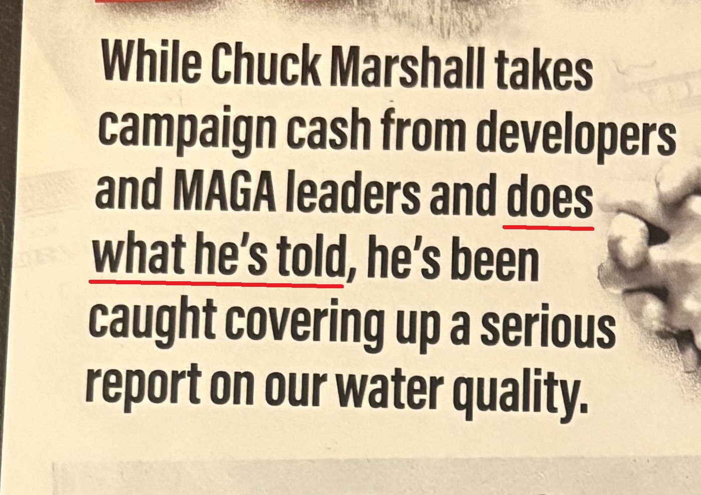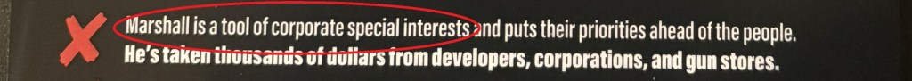 Instead, BK’s mailers went over the top, asserting that “he (Chuck) does what he is told” and he is “a tool of corporate interests and puts their priorities ahead of the people.”