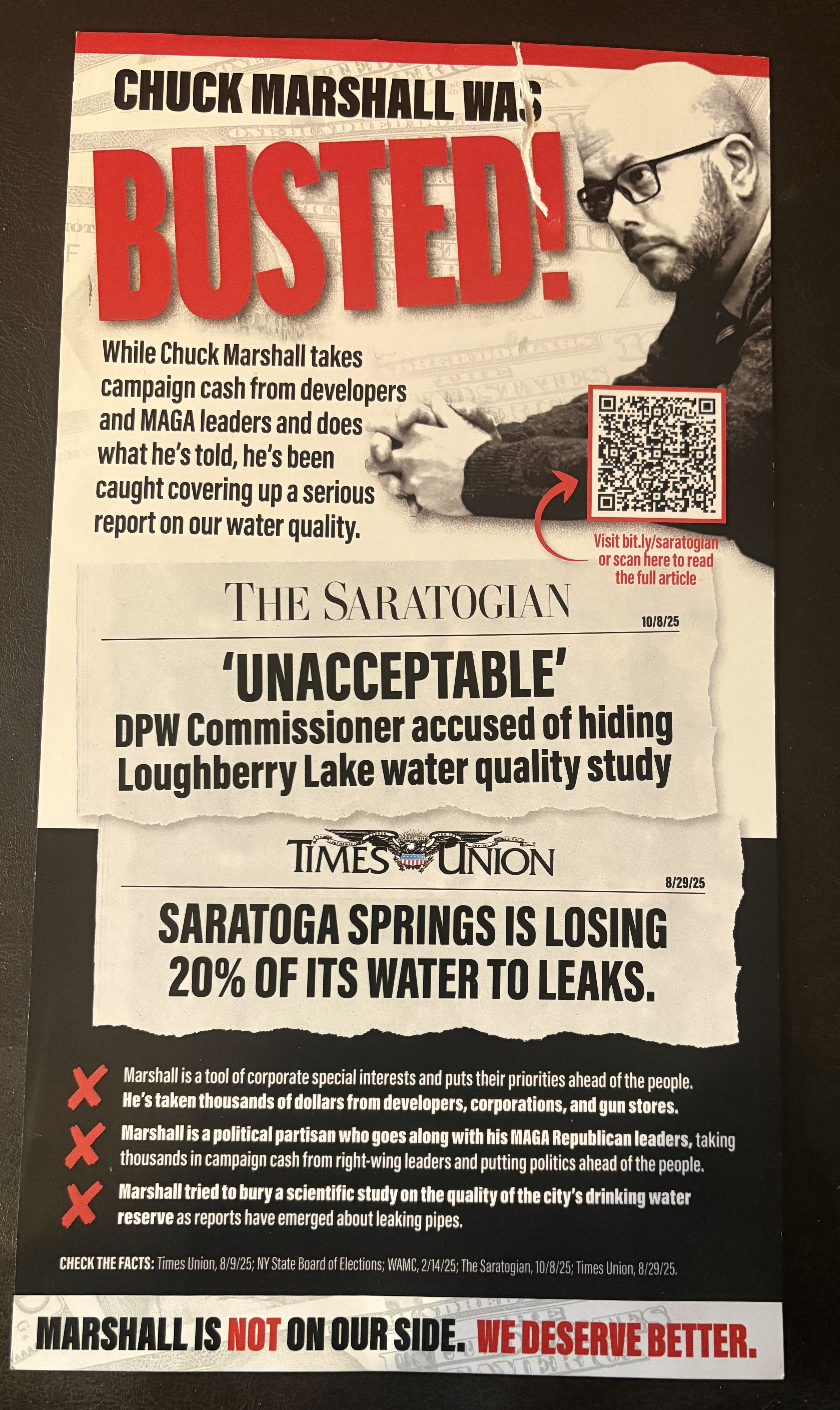 Suffice it to say that since Chuck Marshall immediately gave BK the report when asked and without making him FOIL for it (something that would have meant BK would have not gotten the report until after the election), it is difficult to understand how Mr. Keramati could, with any integrity, describe Marshall as being “caught covering up a serious report on our water quality” as he does in his mailer.