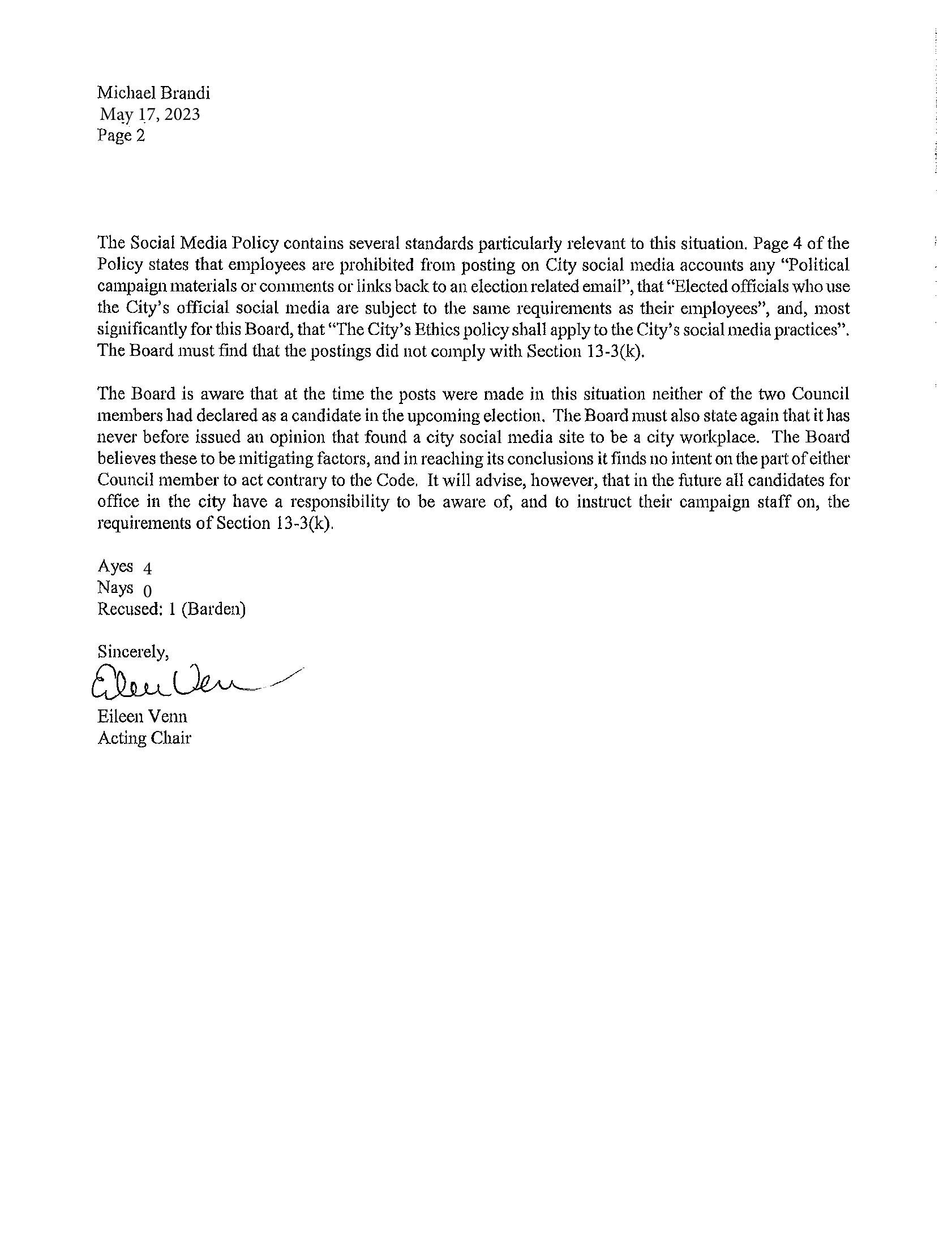 As the complaint was made in February and as the decision was issued on May 17, 2023, the amazing thing is that Sanghvi, who oversees the city’s IT department, had yet another post on the city website that linked to her campaign website this morning (May 22, 2023). It was only up for fifteen minutes.]