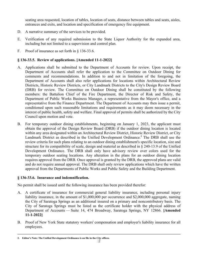 “The Department of Accounts has noted any department conditions as part of the outdoor dining permit.”