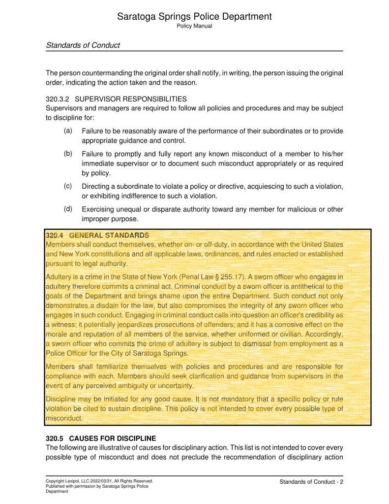 At the March 15, 2022, City Council meeting, Saratoga Springs Public Safety Commissioner James Montagnino announced, without prior notice to the public or the Police Department, that he was eliminating the Assistant Police Chief position, setting off a string of demotions within the department.