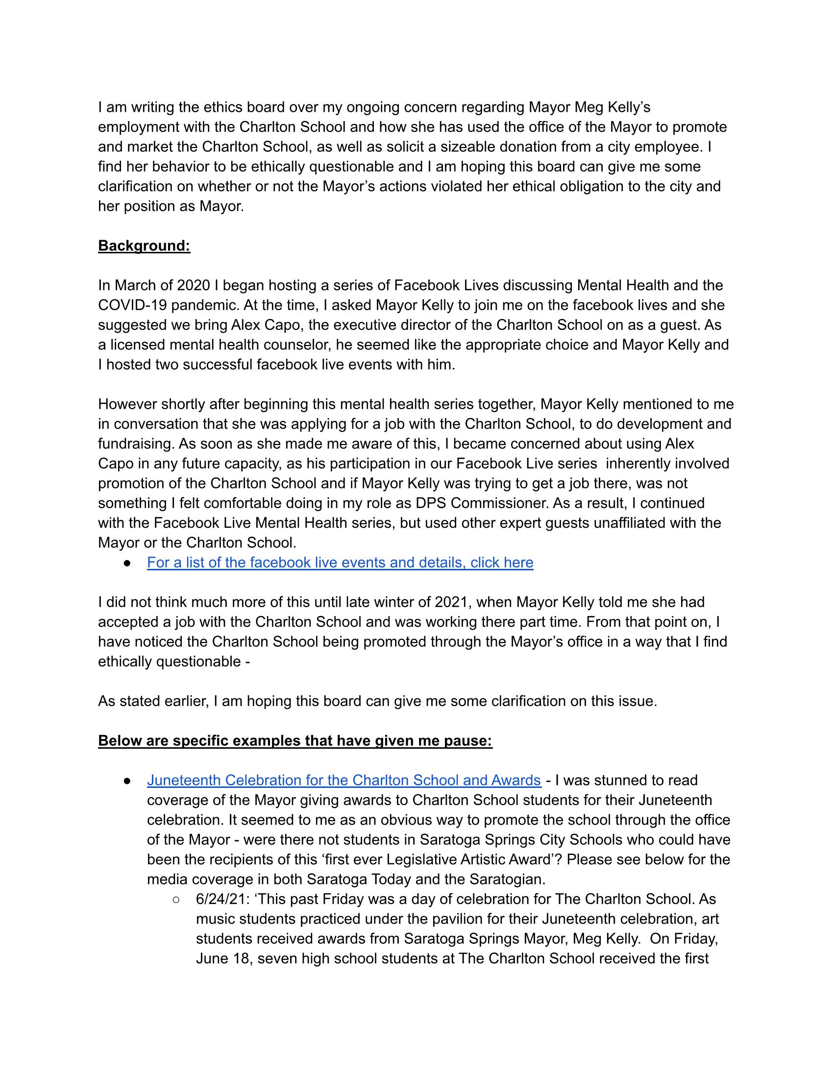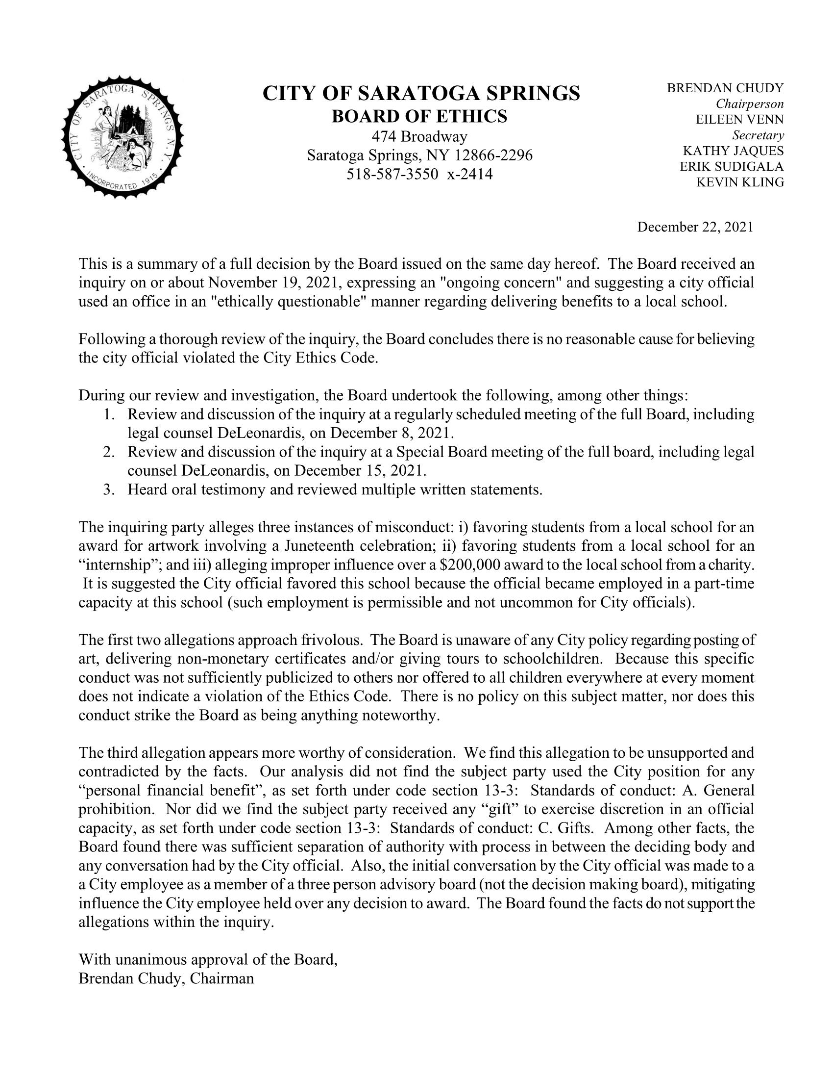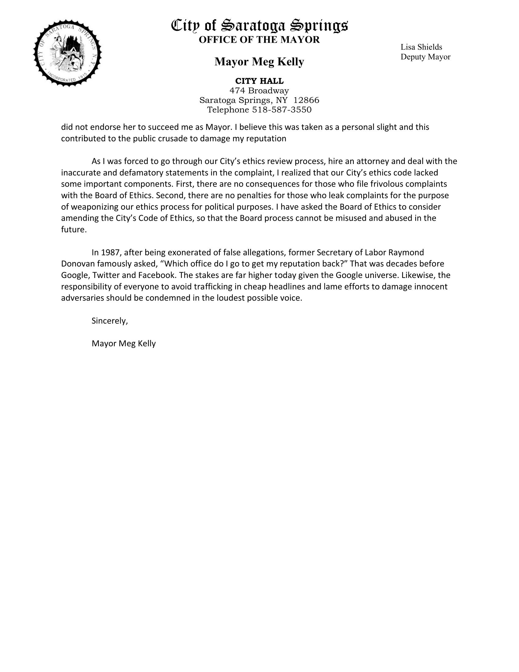 The city has sent the following letter to Saratoga County District Attorney Karen Heggen.